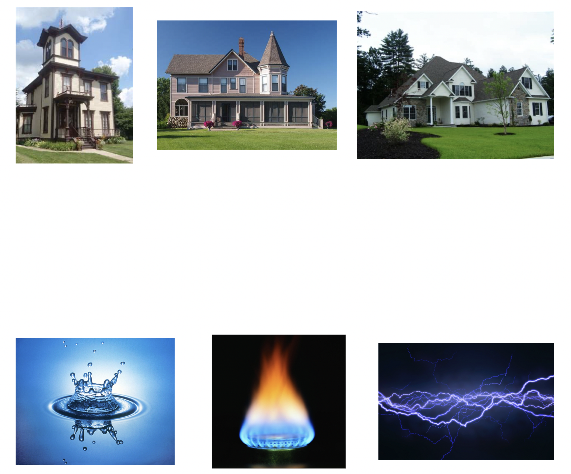Suppose there are three houses, each needing to be connected to three utilities: water, natural gas, and electricity, as pictured in Figure 5.2.2. For safety reasons, we wish to draw the lines connecting the utilities to the houses so that they do not cross. Can you find an arrangement of utility lines that do not cross?